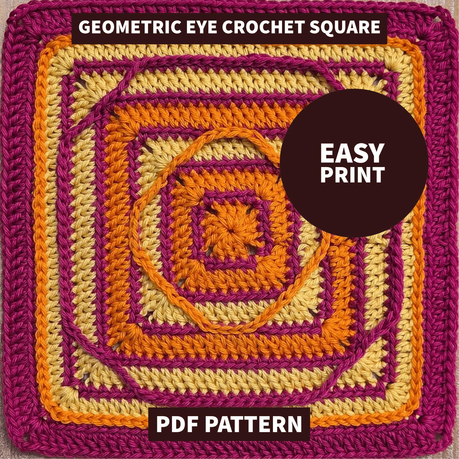Geometric Eye Crochet Blanket Square Easy Print